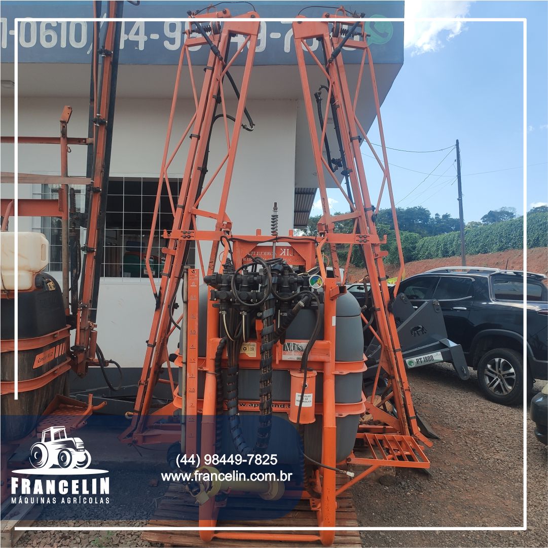 Capacidade de 600 litros Com 14 metros de barra Comando de água elétrico Acionamento de barras hidráulico